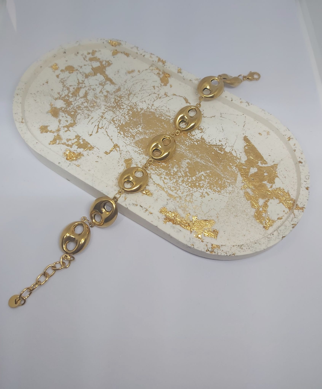 Sublimez votre poignet avec ce bracelet doré en acier inoxydable se distingue par son design , léger ,confortable et lumineux il offre un look moderne tout en restant intemporel .